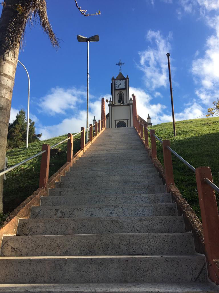 À tarde, passeamos a pé pela cidade, e conhecemos a Igreja de São Benedito. Se você não tiver boas pernas, nem se atreva a visitar esta igreja. Como diria a minha mãe quando viu as fotos, até Jesus chega cansado na missa (rsrs). São dezenas de degraus que dão acesso à uma igreja pequena e bem no alto da cidade.